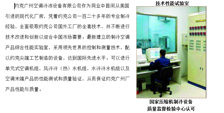 為適應日益發展的中國空調市場的需要,以及讓更多的用戶能夠更為快捷地享受高品質的產品和優良的服務,約克國際集團公司于1995年出資組建了約克廣州空調冷凍設備有限公司,這是約克國際公司在中國建立的首家合資廠,首期總投資為1000萬美金。廠址位于廣東省佛岡縣,北距廣州市80公里,占地面積達49000平方米,地勢平坦,交通便捷。公司現有員工720人,其中技術人員120余人。